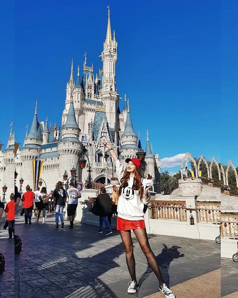 The actress can also be seen wearing chic Disney-themed OOTDs in each of her magical trip.