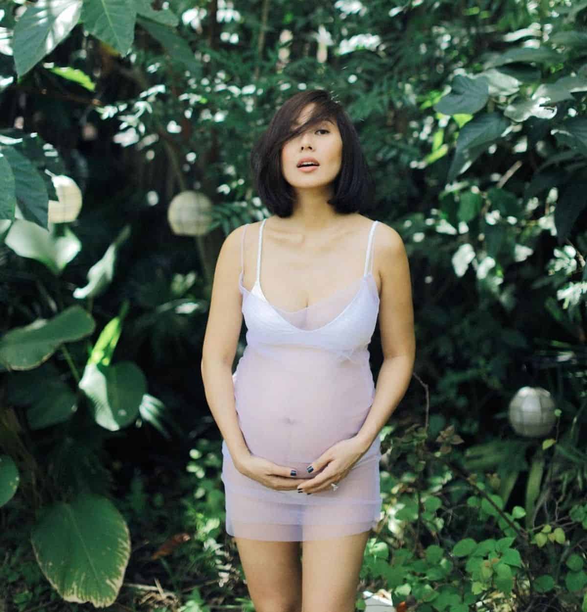 The celebrity stylist shared a stunning photo of her donning a see-through dress as she flaunts her growing baby bump.