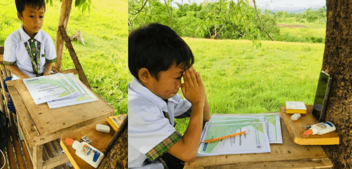 A young boy in Alicia, Bohol has found the perfect spot for his online classes as COVID-19 forced schools across the country to shift to virtual classrooms.