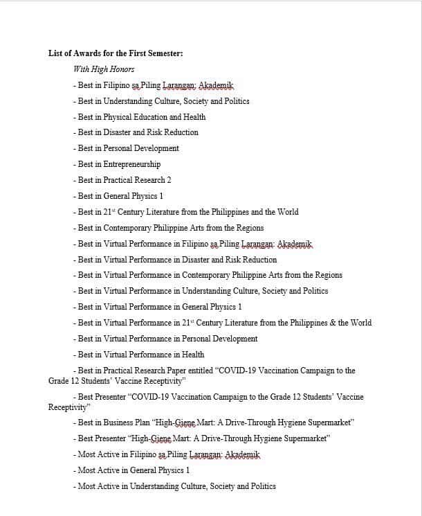 “This SHS graduation has given me the most number of awards, but ever since elementary, (I’ve been ranking) first sa batch ko and naging consistent na yun until grade 12,” she said.