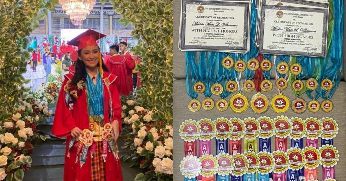 Eighteen-year-old Meckia Mari “Iya” Villanueva, who is Sto. Niño Academy’s batch valedictorian, bagged 60 awards, including 24 medals, and has consistently been top of her class since elementary.