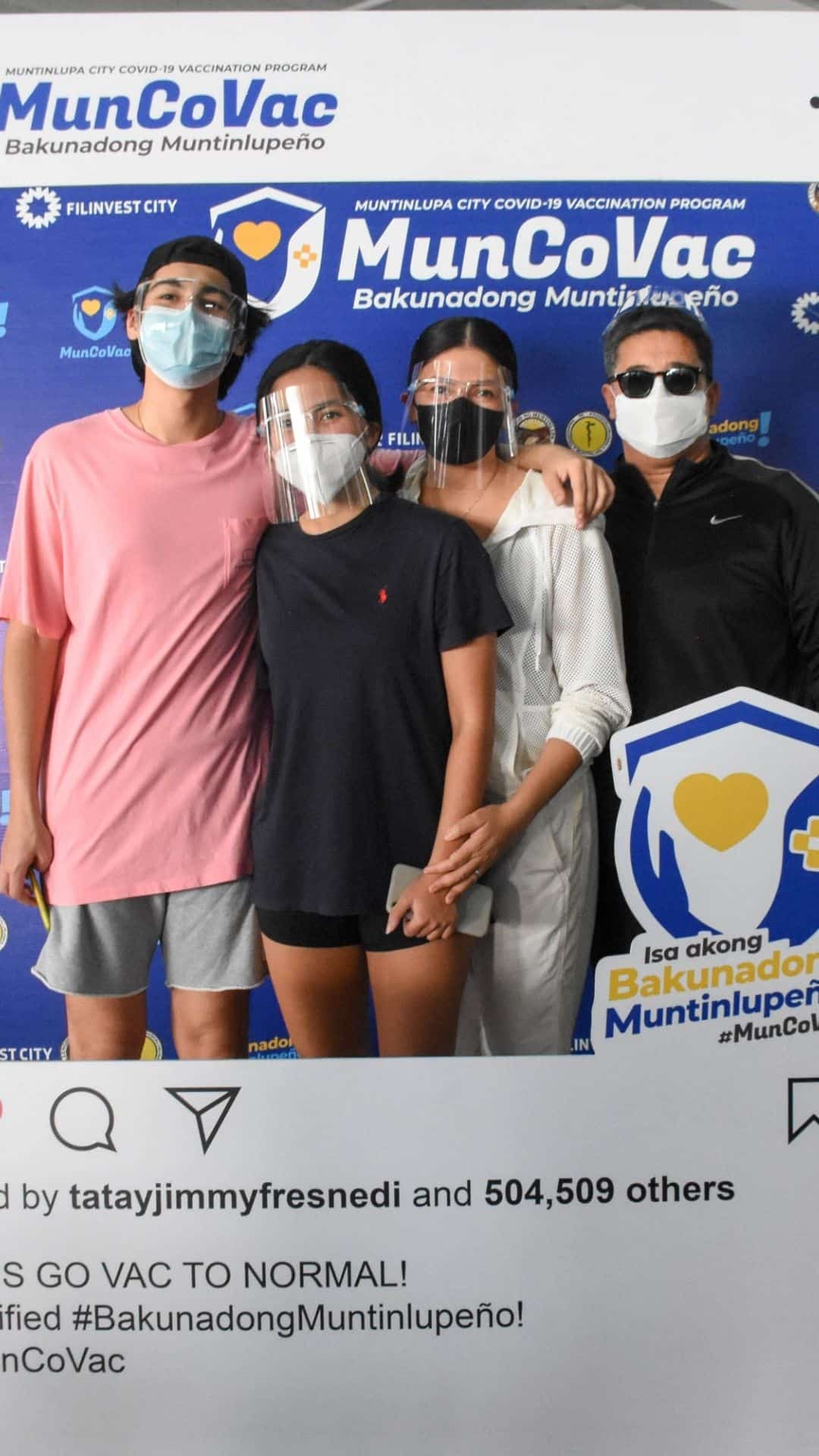 Aga Muhlach, Charlene Gonzales and their twins — Atasha and Andres — received their first jab of the COVID-19 vaccine in Muntinlupa city.