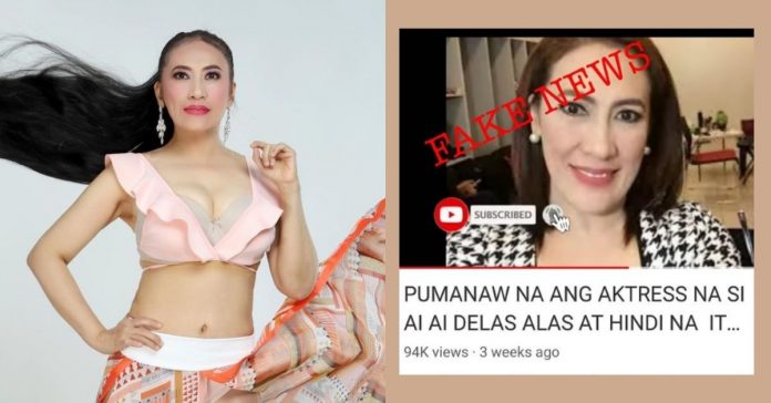 “Fake news. Huwag kayo mag-subscribe dito,” wrote Ai-Ai alongside the screenshot of the video titled “Pumanaw na si Ai Ai Delas Alas at hindi na ito…”