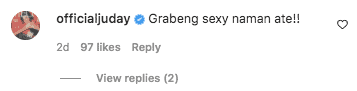 “Grabe sexy naman ate!!” Judy Ann Santos responded to one of her posts.