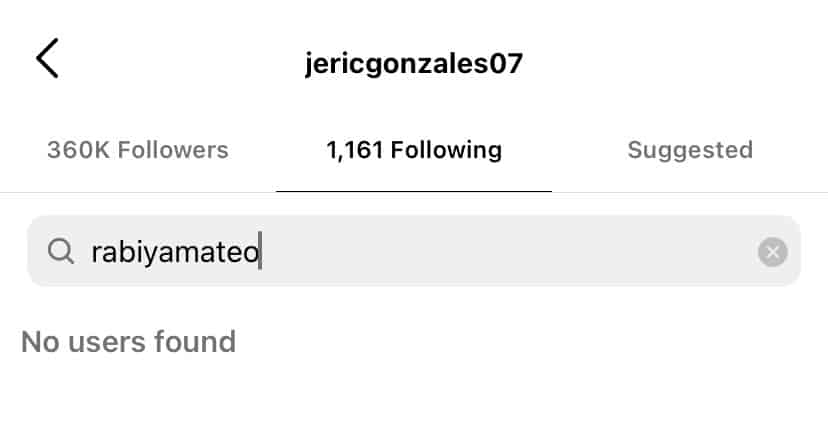 Rabiya Mateo and Jeric Gonzales have unfollowed each other on Instagram amid breakup rumors.