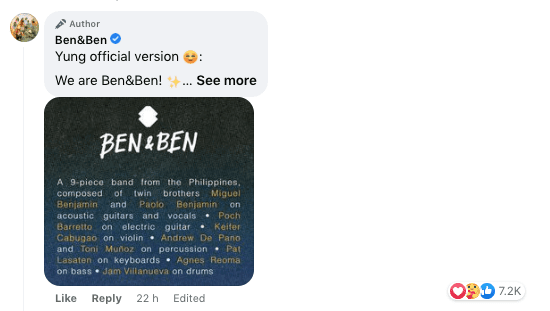 Ben&Ben’s social media post turned viral as well after it collected over 445,000 reactions and 22,000 shares on Facebook.