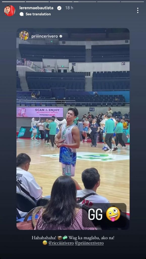 On her Instagram story, Leren Mae jokingly expressed her support for the basketball star’s first Philippine Basketball Association (PBA) game as shown in his brother, Prince Rivero’s Instagram reel.
