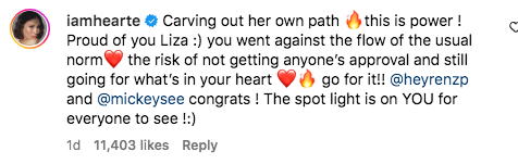 “Carving out her own path ? This is power! Proud of you Liza :),” Heart began.