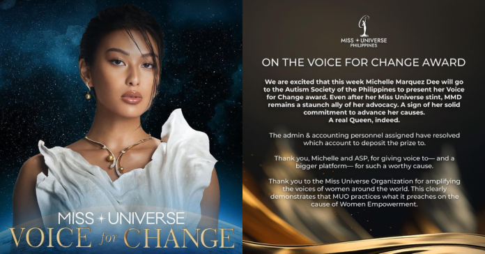 “We are excited that this week Michelle Marquez Dee will go to the Autism Society of the Philippines to present her Voice for Change award. Even after her Miss Universe stint, MMD remains a staunch ally of her advocacy,” MUPH said in a statement.