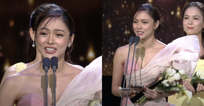 In her acceptance speech, Kim turned emotional as she expressed her gratitude to the people behind all the opportunities she has received throughout her career, especially to the late Dreamscape Entertainment head Deo Endrinal.