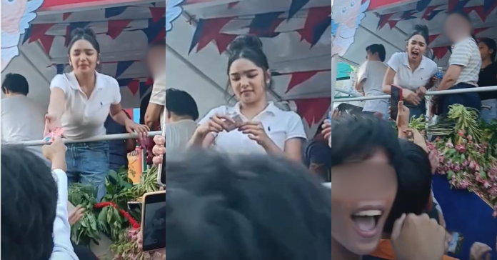 A viral video captured the moment when Andrea accepted the card from a male fan. Upon realizing what it was, she reacted with visible shock, threw the card back while laughing and playfully scolded the fan.