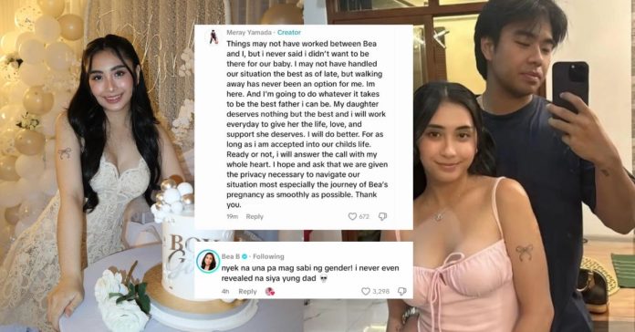 The conversation took a turn when Meray Yamada, also a content creator and Bea’s ex-boyfriend, declared his intention to be present in their child’s life and that he never intended to walk away. In a now deleted comment on TikTok, he expressed his desire to step up as a father and even referenced their baby’s gender.