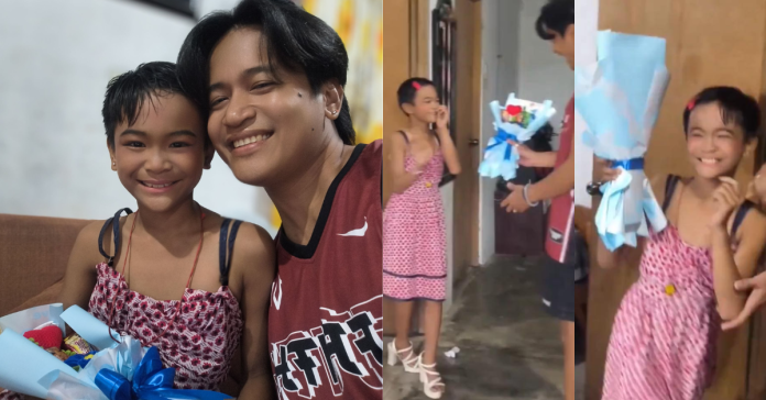 Les Tuquero, a father from Victoria, Tarlac, shared a video on Facebook capturing the emotional moment he surprised his child, Ezekiel, with a bouquet of gifts on Heart’s Day.