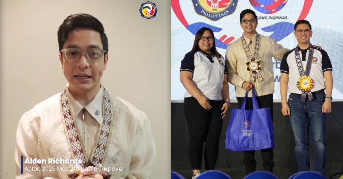 Actor Alden Richards has been recognized as one of the Most Outstanding Individual Taxpayers by the Bureau of Internal Revenue (BIR).