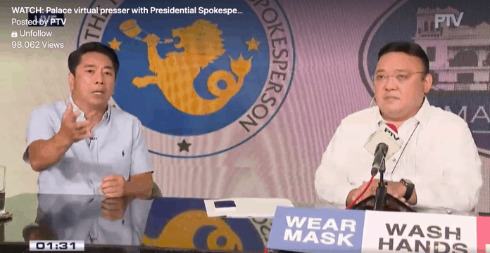 These past two weeks, Roque has been holding his virtual presser at Willie’s WilTower in Quezon City after his office at the New Executive Building was closed off due to COVID-19 cases.