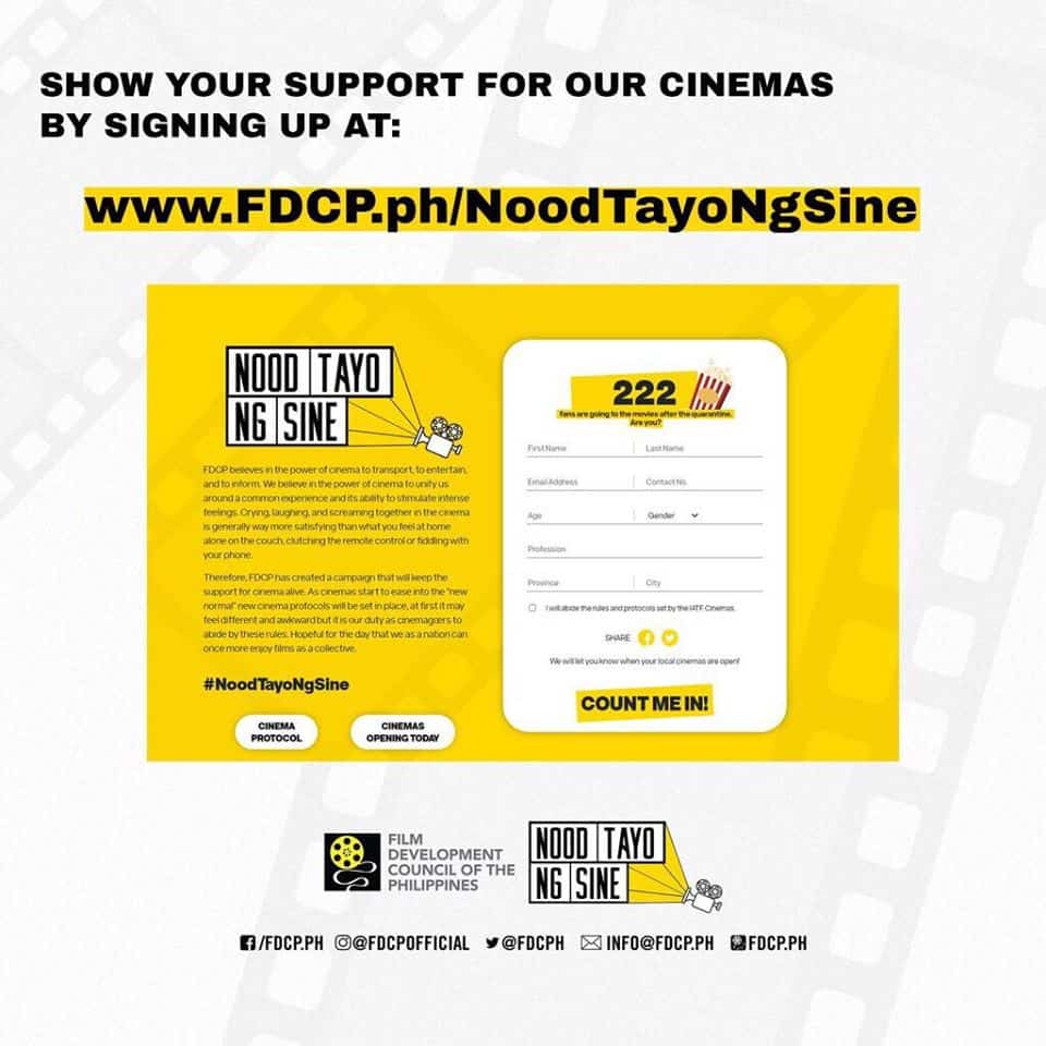 The FDCP opened a mailing list for avid moviegoers to be notified when their local cinemas will be open.