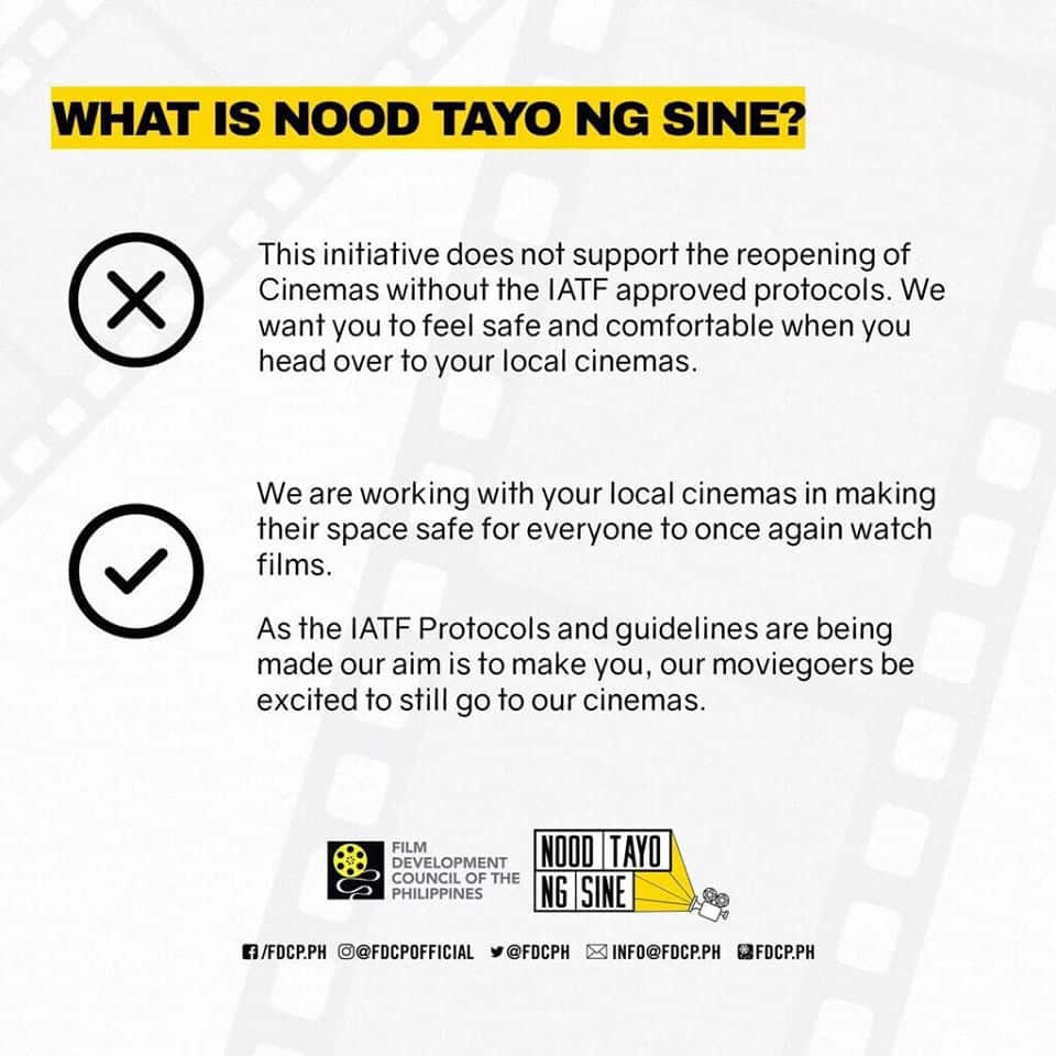 They assured that their initiative does not support reopening of cinemas without the Inter-Agency Task Force on Emerging Infectious Diseases’ (IATF) approved protocols.